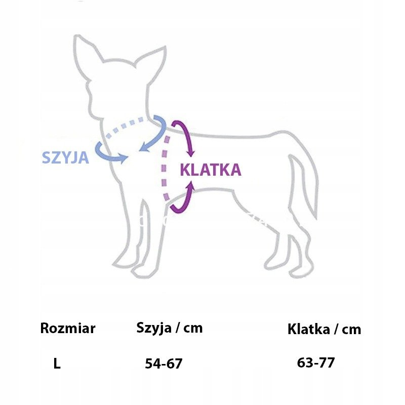 - Sylwetka L: szyja / cm; 54-67; klatka / cm: 63-77