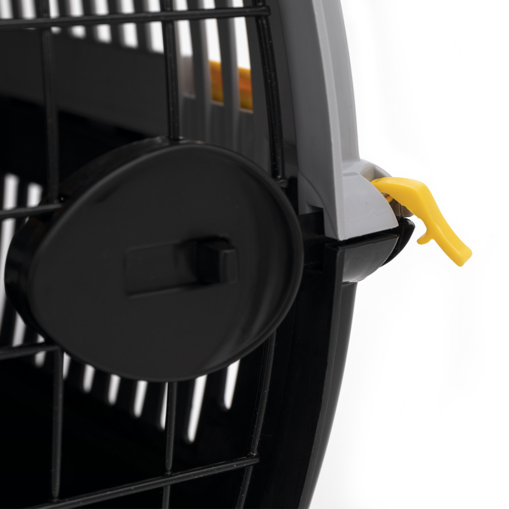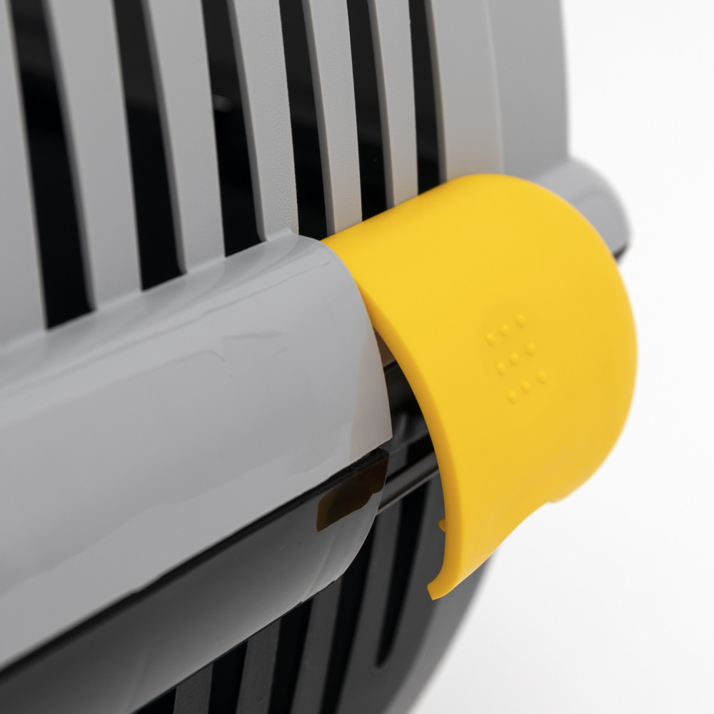 Transporter Comfy Cosmos Small Open idealnie nadaje się do samolotu, samochodu czy pociągu. Wykonanie z wysokojakościowego tworzywa sztucznego zapewnia najwyższą trwałość i nie powoduje uczuleń. Produkt dostępny jest w kolorze szarym i żółtym. Transporter jest długi na 48cm, szeroki na 33 cm i wysoki na 32 cm. To sprawia, że bez problemu pomieści średniej wielkości zwierzę.