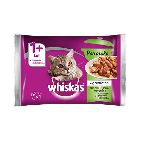 WHISKAS Potrawka Smaki Rybne i Tradycyjne w Galaretce 4x 85 g - mokra karma dla kotów