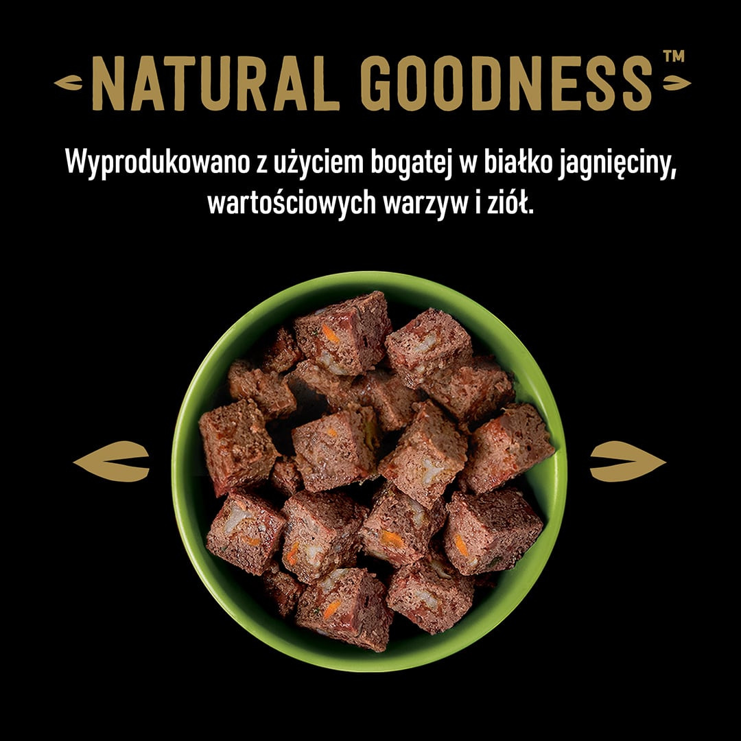 Jest bogata w jagnięcinę, przybrany warzywami i ziołami – szpinak to źródło żelaza i potasu, marchewka jest źródłem przeciwutleniaczy, a rozmaryn i natka pietruszki, wpływają na apetyczność jedzenia. Karma Cesar Natural Goodness Bogaty w Jagnięcinę została przygotowywana tak, aby zachować naturalne wartości odżywcze i pyszny smak.
