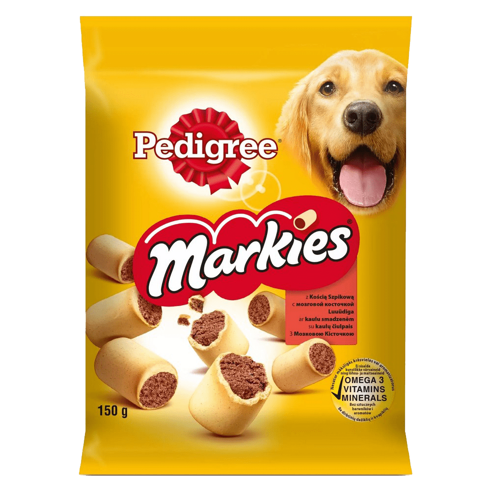 PEDIGREE® Markies to pyszne ciasteczka w formie kruchych rurek z kością szpikową, które dorosłe psy uwielbiają gryźć. Z tą przekąską skutecznie troszczysz się o zdrowie i witalność swojego pupila.