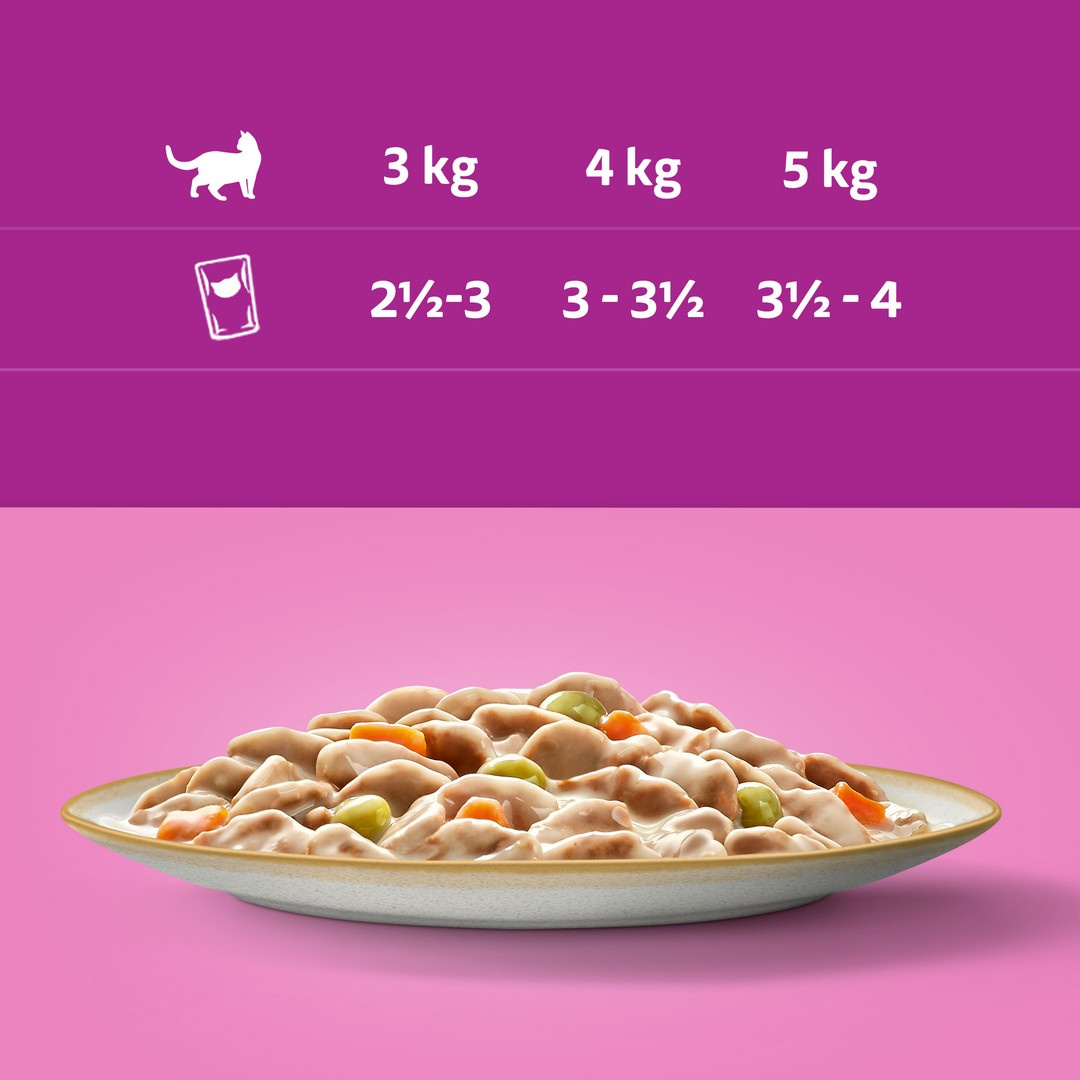 W każdym wariancie smakowym znajdują się soczyste, mięsiste kawałki zanurzone w aromatycznym sosie, których wielkość została specjalnie dostosowana do kocich potrzeb. Ten smaczny pokarm w wygodnej saszetce zawiera cynk, który wspiera zdrowie skóry i sierści, a odpowiedni bilans minerałów pomaga zadbać o kondycję dróg moczowych Twojego pupila. Od figlarnego kocięcia po wspaniałego dorosłego kota – nasze smakowite receptury zostały opracowane z myślą o tym, aby kot w każdym wieku mruczał z zadowolenia w porze posiłku i nie tylko.