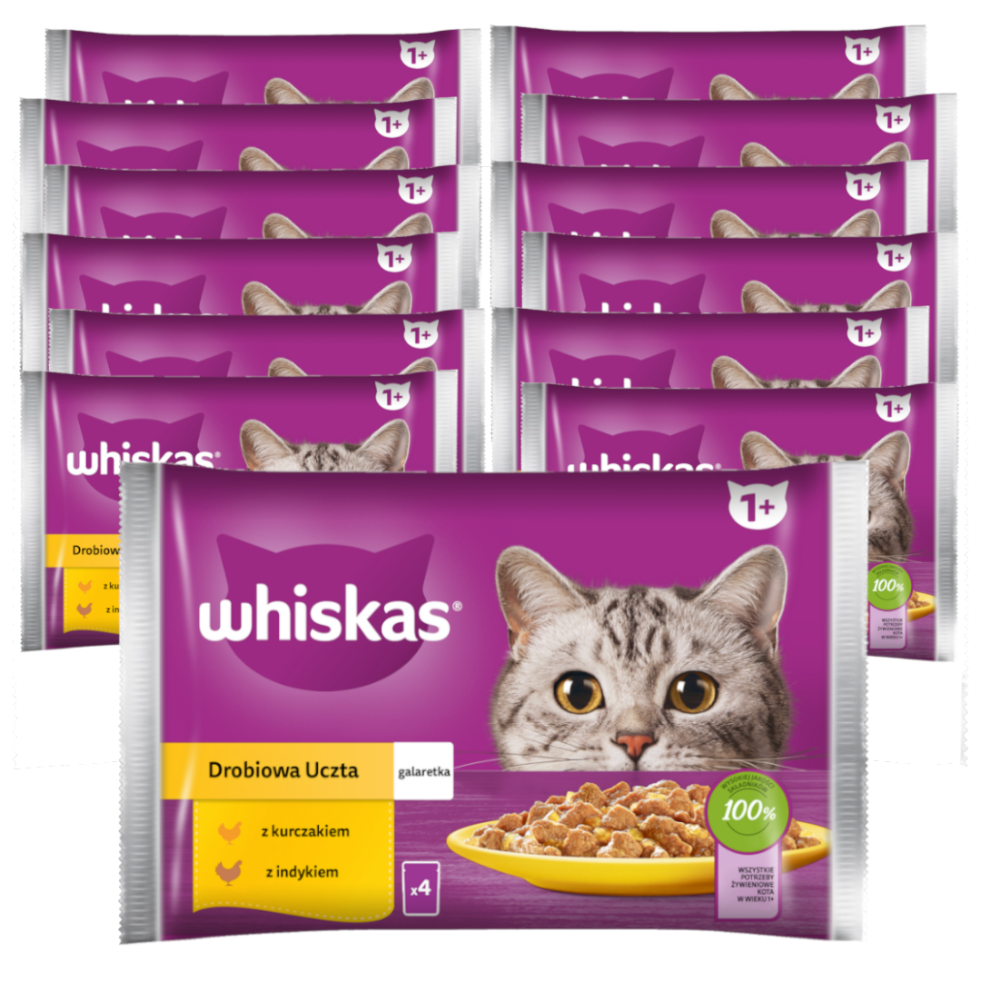 Whiskas Adult 13x340g Drobiowa Uczta Mokra Karma Dla Dorosłego Kota W Galaretce Kawałki Z Kurczakiem I Indykiem
