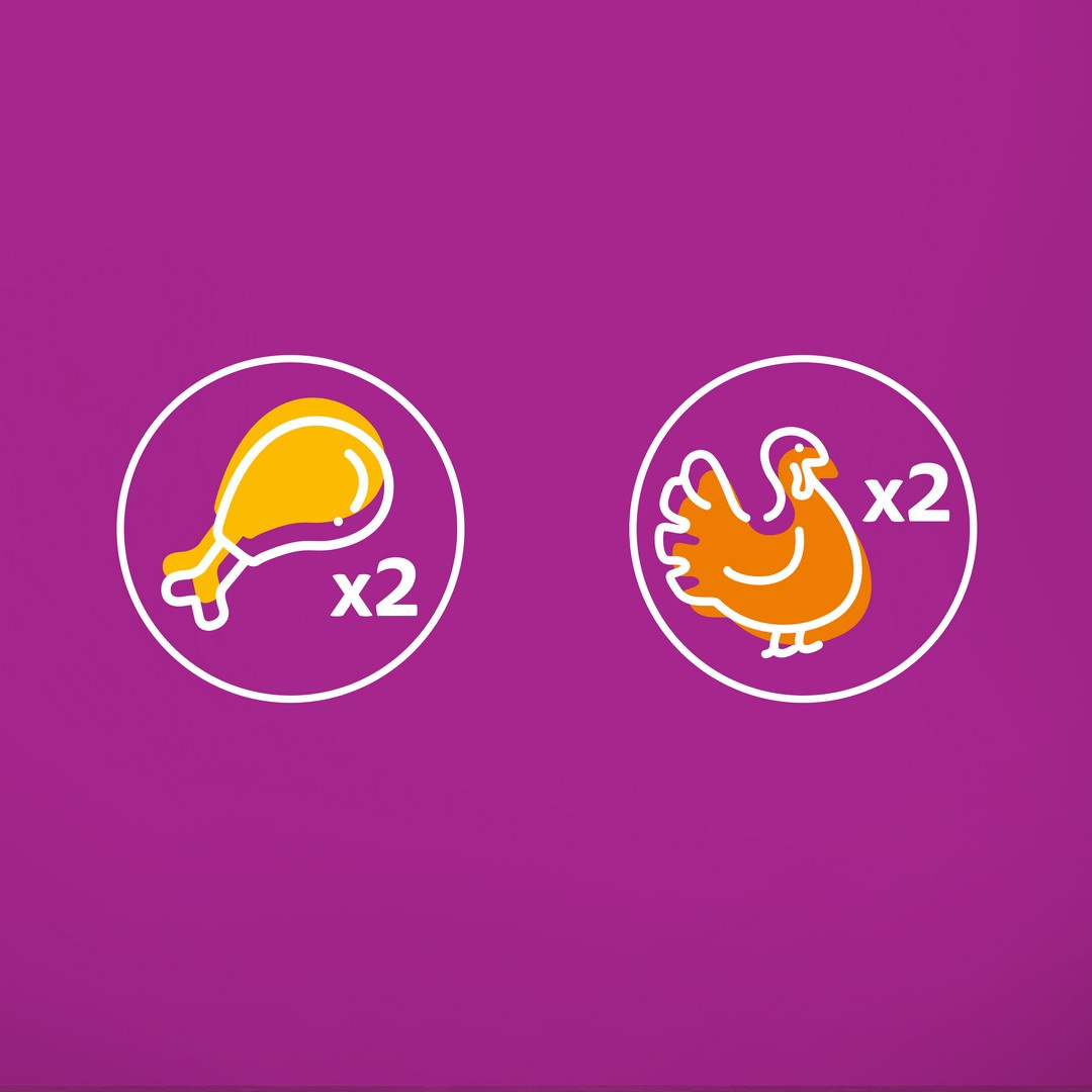 Koci przyjaciel rozsmakuje się w jednym z dwóch wariantów: kawałki z kurczakiem oraz z indykiem. Ten smaczny pokarm w wygodnej saszetce zawiera cynk, który wspiera zdrowie skóry i sierści, a odpowiedni bilans minerałów pomaga zadbać o kondycję dróg moczowych Twojego pupila. Od figlarnego kocięcia po wspaniałego dorosłego kota – nasze smakowite receptury zostały opracowane z myślą o tym, aby kot w każdym wieku mruczał z zadowolenia w porze posiłku i nie tylko.