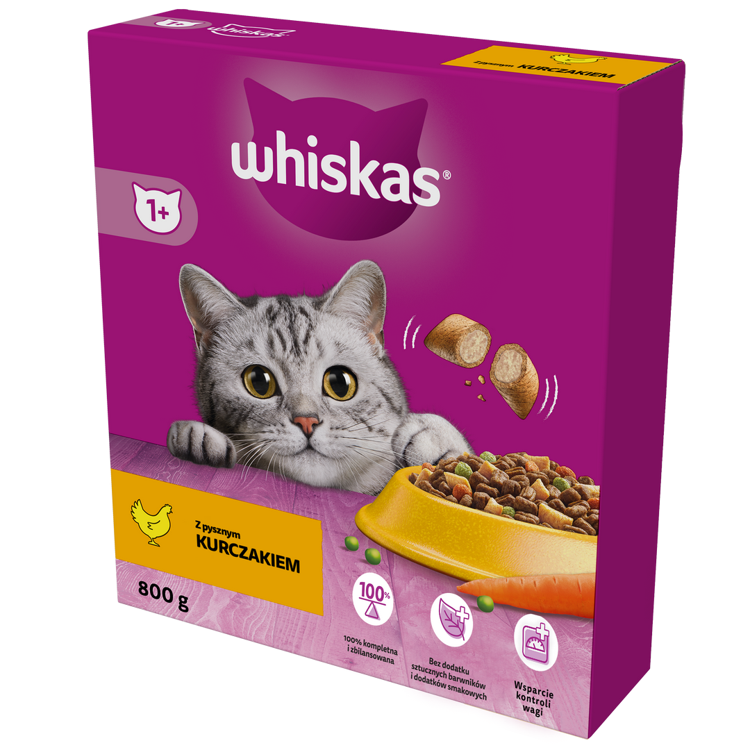 Whiskas Adult 800g Sucha Karma Pełnoporcjowa Dla Dorosłych Kotów Z Kurczakiem