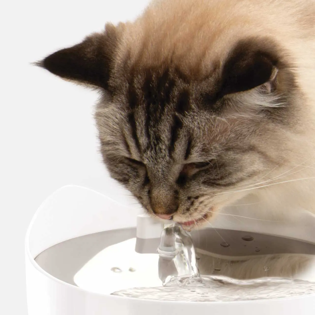 Zdarzyło Ci się zobaczyć, jak Twój kot próbuje pić z kranu z głową przechyloną na bok? Fontanna Catit PIXI zawiera wylewkę, która tworzy łukowaty strumień wody. Dzięki temu kot może wygodnie pić. Przystawkę wylewki można łatwo założyć i zdjąć nawet wtedy, gdy fontanna pracuje.