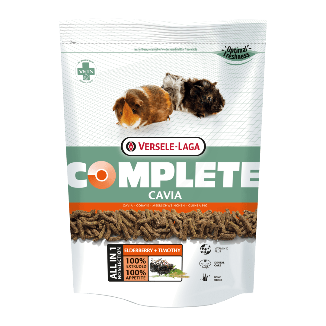 Versele-Laga Complete Cavia to żywienie bez zmartwień. Niezwykle smaczne ekstrudaty przygotowane wg koncepcji "wszystko w jednym" zapobiegają selektywnemu pobieraniu pokarmu. Dzięki temu Twoja kawia otrzymuje wszystkie niezbędne substancje odżywcze pozwalające jej cieszyć się pełnią zdrowia. Pokarm zawierający długie włókna, a także stabilizowaną witaminę C dostosowany jest do potrzeb żywieniowych kawii domowych. Versele-Laga Complete Cavia został przygotowany przez lekarzy weterynarii w oparciu o zaawansowane badania.