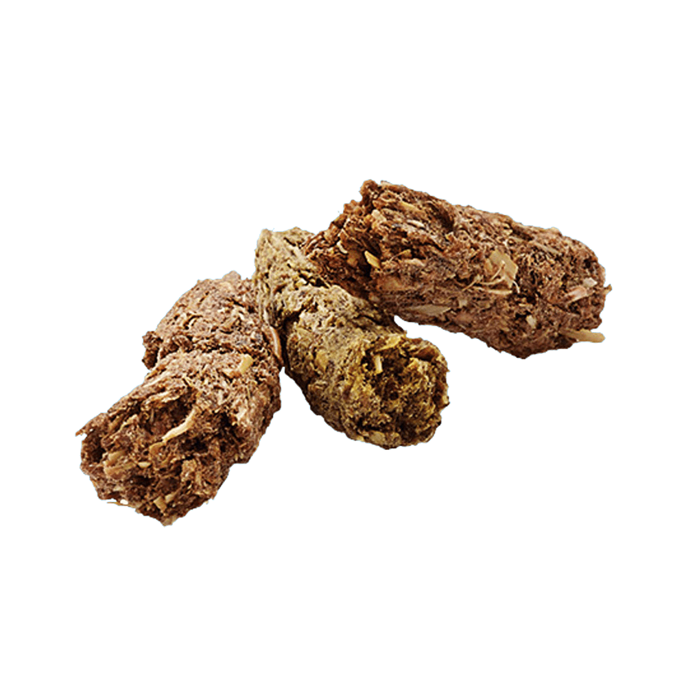 produkty pochodzenia roślinnego (tymotka, trawy i zioła 7%), owoce (czarny bez 5%), minerały, nasiona (siemię lniane 2%), fruktooligosacharydy (0,3%), nagietek, jukka