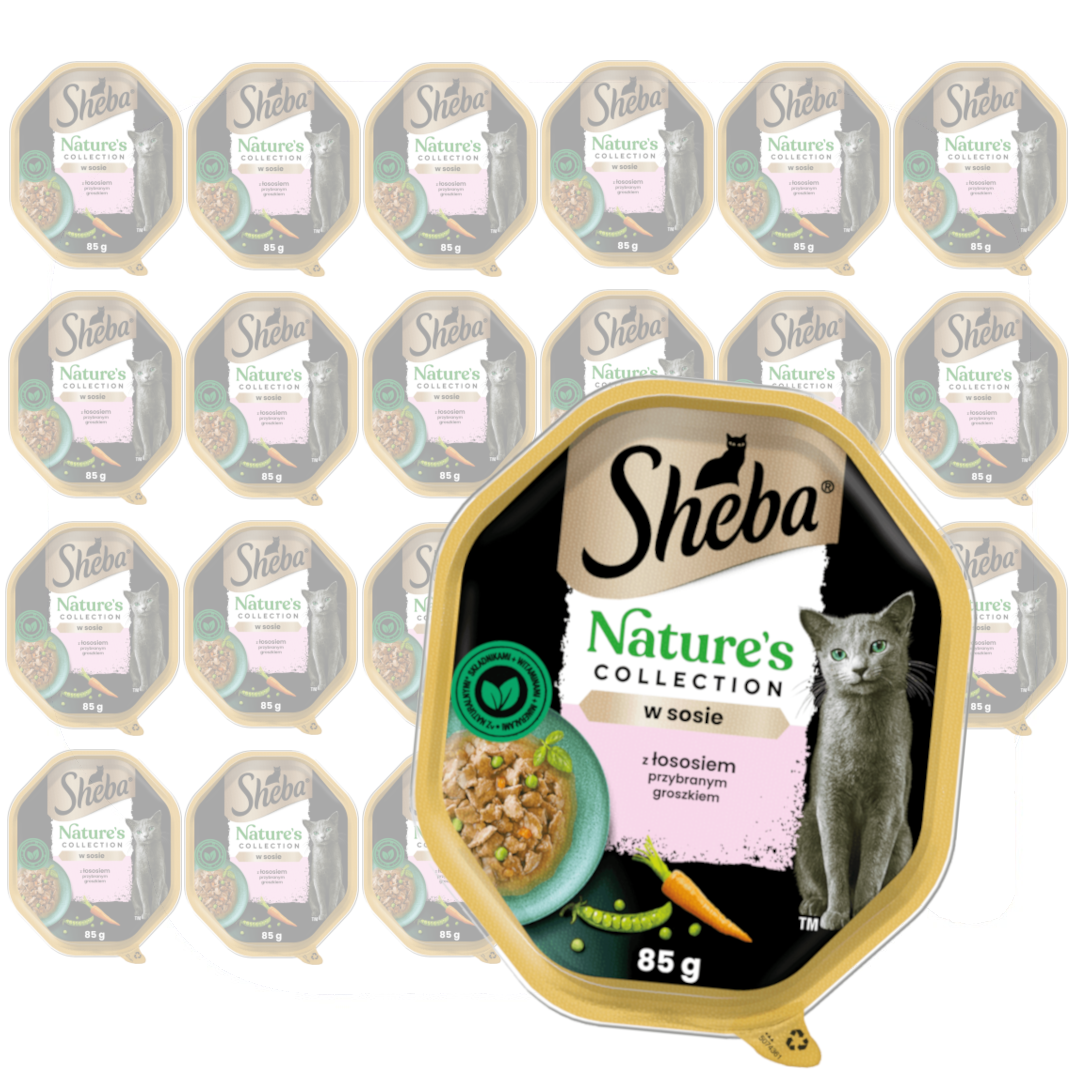 Sheba® Nature’s Collection to mieszanka starannie wyselekcjonowanych, delikatnych kawałków w wykwintnym sosie. Propozycja posiłków z kawałkami z łososiem przybranym groszkiem zachwyci podniebienia nawet najbardziej wymagających kotów. Mistrzowsko przygotowane posiłki z naturalnych składników wysokiej jakości, z witaminami oraz minerałami.