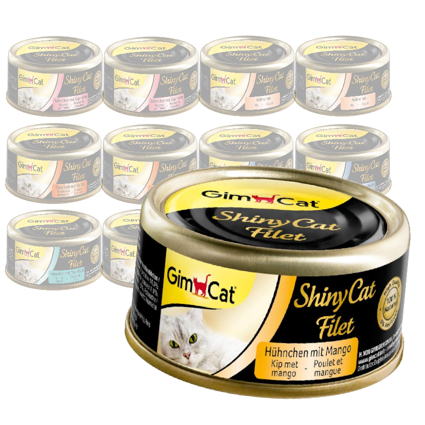 GimCat ShinyCat Filet to wyjątkowo smakowita karma o doskonałych właściwościach. Wysokiej jakości kawałki mięsa, delikatnie gotowane w bulionie w celu zachowania wartości odżywczych w połączeniu z smakowitym dodatkiem tworzą zdrowy oraz zbilansowany posiłek. Wysoka zawartość białka wzmacnia układ odpornościowy kota oraz pozytywnie wpływa na rozwój organizmu. Karma zawiera tylko 1%-2,5% tłuszczu, dzięki czemu jest lekkostrawna i doskonale nadaje się dla kotów z nadwagą. Produkt nie zawiera konserwantów, barwników oraz wzmacniaczy smaku. Bez laktozy. Bez dodatku cukru. Karma uzupełniająca dla kotów.