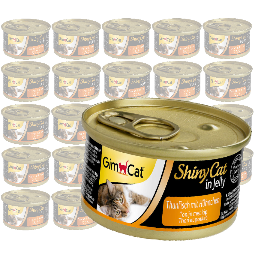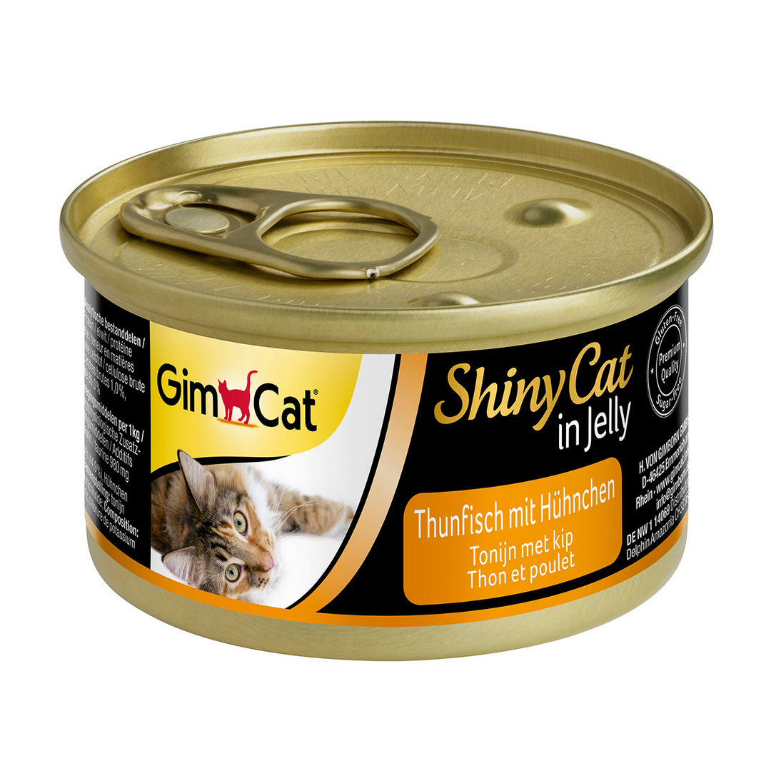 GimCat ShinyCat to wyjątkowo smakowita karma uzupełniająca dla kota. Drobne kawałki kurczaka z dodatkiem mięsa krabowego w galarecie. Smakowite kawałki mięsa to prawdziwy koci rarytas. Delikatne kawałki mięsa zatopione w naturalnej galaretce, sprawiają, że posiłek jest soczysty i miękki. Wysoka zawartość białka wspiera zdrowie kota i pozytywnie wpływa na jego układ immunologiczny. Karma zawiera tylko 1% tłuszczu, dzięki czemu jest lekkostrawna i doskonale nadaje się dla kotów z nadwagą. Dodatkowo produkt nie zawiera: