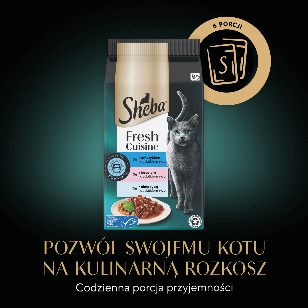 Sheba Fresh Cuisine Taste of Tokyo Saszetki 6x50g Mokra Karma Dla Dorosłych Kotów Tuńczyk Łosoś Biała Ryba Ryż