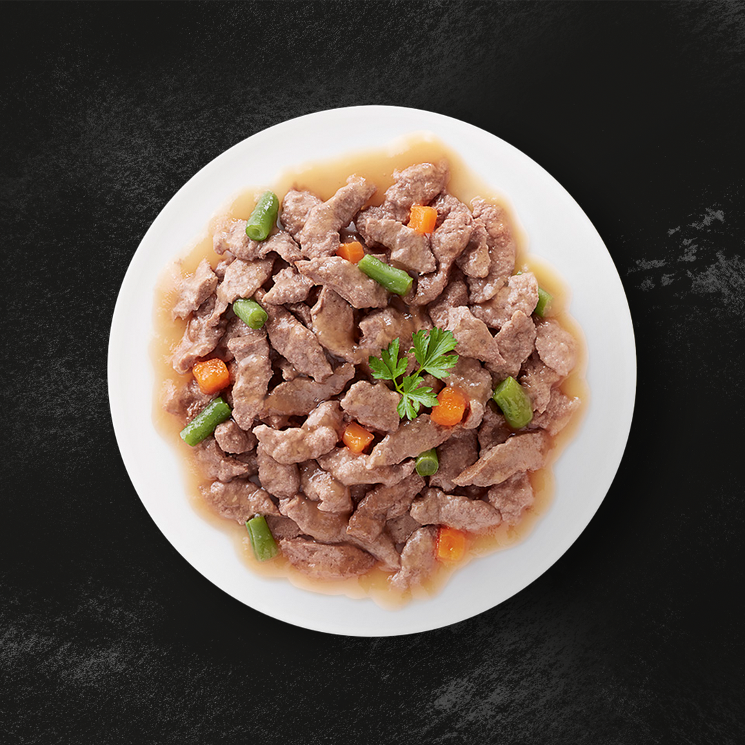 (2x400g) z Wołowiną Skład: mięso i produkty pochodzenia zwierzęcego (w tym 4% wołowiny w kawałkach*), zboża, roślinne ekstrakty białkowe, substancje mineralne, produkty pochodzenia roślinnego, cukry.