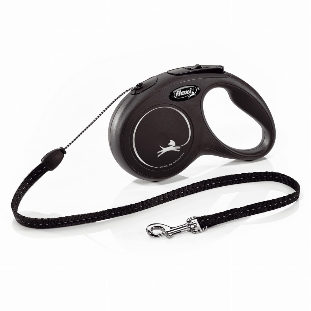 Smycz automatyczna New Classic S idealna dla psów ras małych do 12 kg. 5-metrowa solidna linka pozwala psu na swobodny spacer, a przycisk blokady ułatwia nam zatrzymanie psa. Smycz można zablokować na pożądanej długości za pomocą dodatkowego przycisku, dzięki czemu mamy lepszą kontrolę nad czworonogiem. Została zaprojektowana tak, aby z łatwością obsługiwać ją tylko jedną ręką. Wykończona z najwyższą starannością, wyprofilowana rączka idealnie dopasowuje się do dłoni.