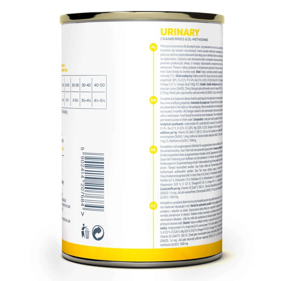 Pełnoporcjowa i zbilansowana karma dietetyczna dla psów, przeznaczona do wspomagania problemów w obrębie układu moczowego: pęcherza i dróg wyprowadzających mocz. Dieta Urinary Dog ogranicza powstawanie kryształów i kamieni struwitowych (fosforanowo-amonowo-magnezowych).