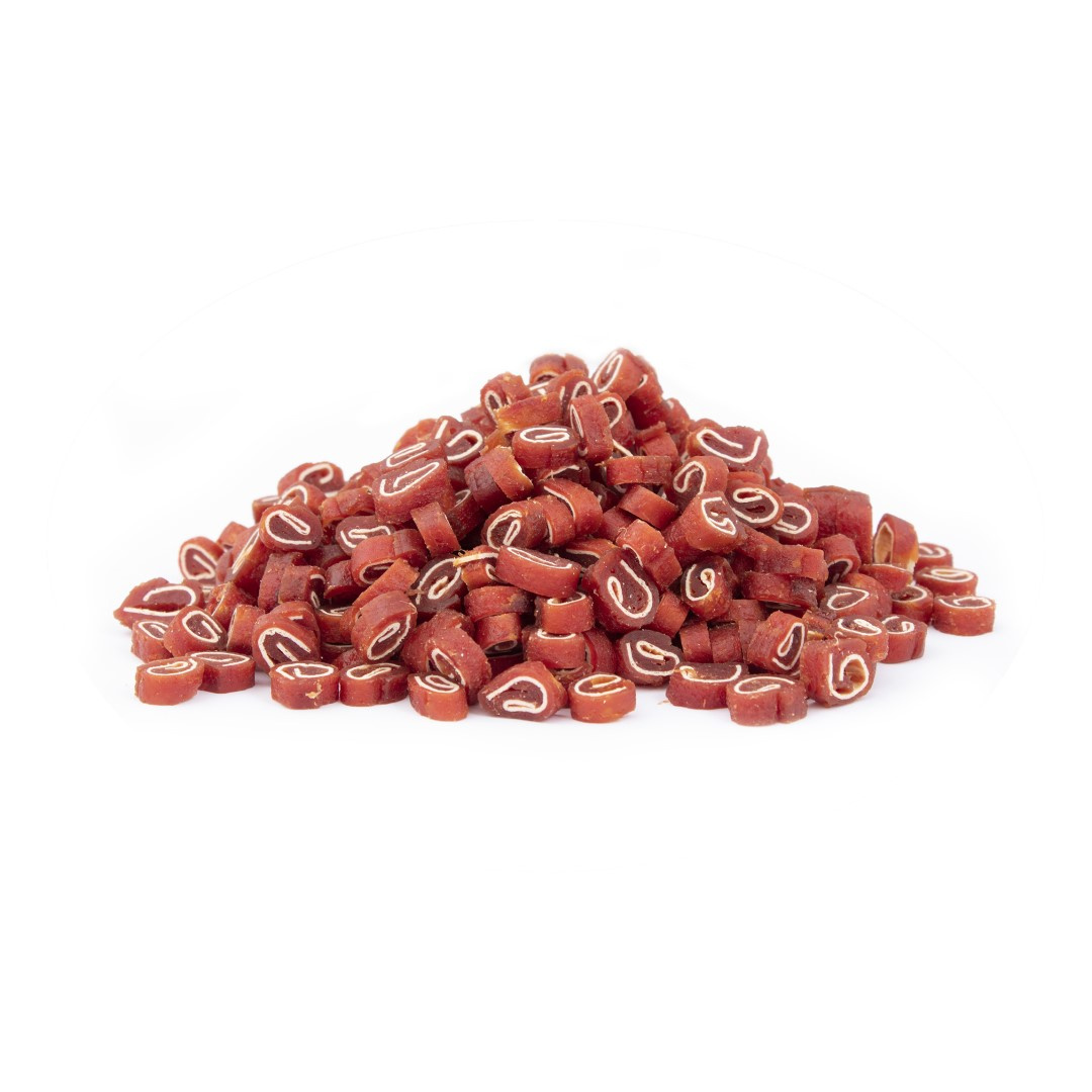 Rozmiar przekąski jest dopasowany do psów wszystkich ras. Zamykane opakowanie pozwoli dłużej utrzymać świeżość produktu.