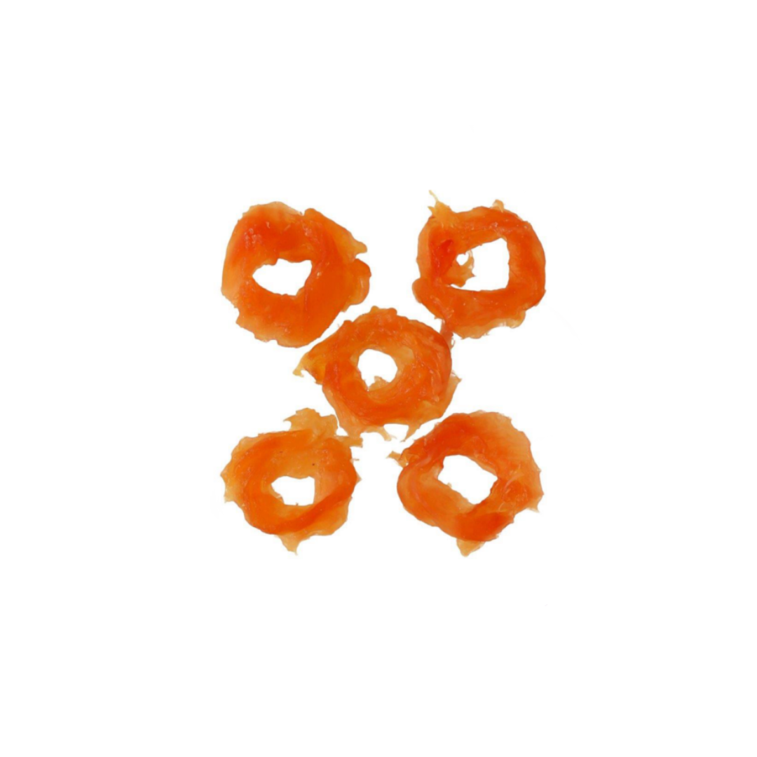 Krążki z kurczaka to idealna przekąska dla Twojego psa. Przysmak jest miękki, lekkostrawny i łatwo przyswajalny. Zapewni Twojemu psu niezbędne witaminy i proteiny. Krążki zaspokajają naturalną chęć gryzienia i pomagają w oczyszczeniu zębów. Ich żucie wzmacnia dziąsła. Jest to doskonałe uzupełnienie codziennej diety Twojego pupila.
