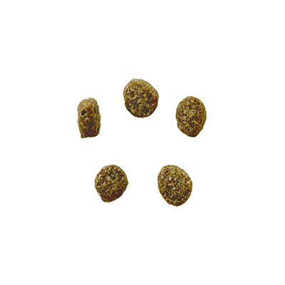 Białko 30%, zawartość tłuszczu 15%, włókno surowe 2,5%, popiół surowy (składniki mineralne) 7% (w tym wapń 1,3% i fosfor 1,1%), Omega-6 3,2%, Omega-3 0,5%, wilgotność 10%. *Naturalne składniki