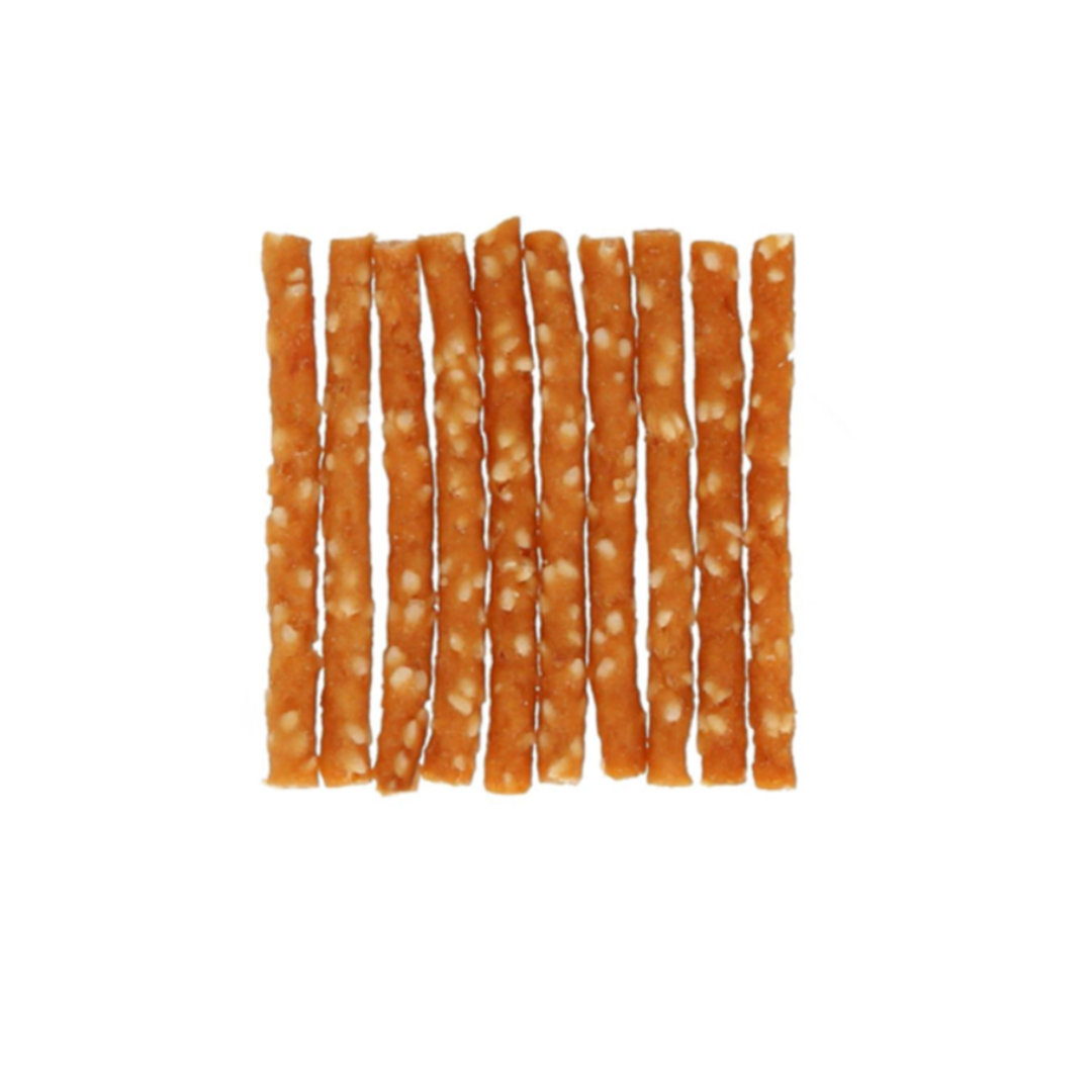 Patyczki z kurczakiem i ryżem to idealna przekąska dla Twojego psa. Zdrowe i lekkostrawne przysmaki, są doskonałym uzupełnieniem karmy podstawowej dla psów. Bogate w witaminy i proteiny. Przysmaki zaspokajają u psa naturalną chęć gryzienia. Pomagają w oczyszczaniu zębów, a ich żucie wzmacnia dziąsła.