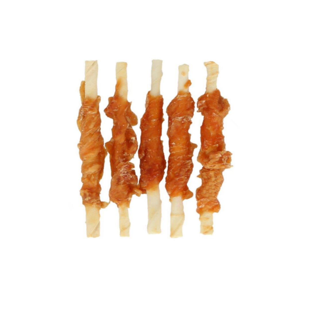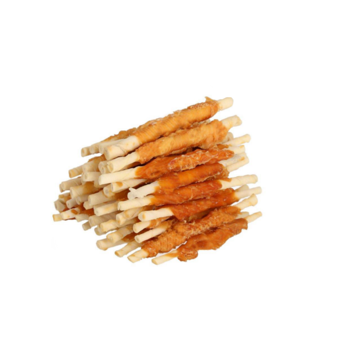 Pałeczki owinięte kurczakiem to idealna przekąska dla Twojego psa. Zdrowe i lekkostrawne przysmaki, są doskonałym uzupełnieniem karmy podstawowej dla psów. Bogate w witaminy i proteiny. Przysmaki zaspokajają u psa naturalną chęć gryzienia. Pomagają w oczyszczaniu zębów, a ich żucie wzmacnia dziąsła.