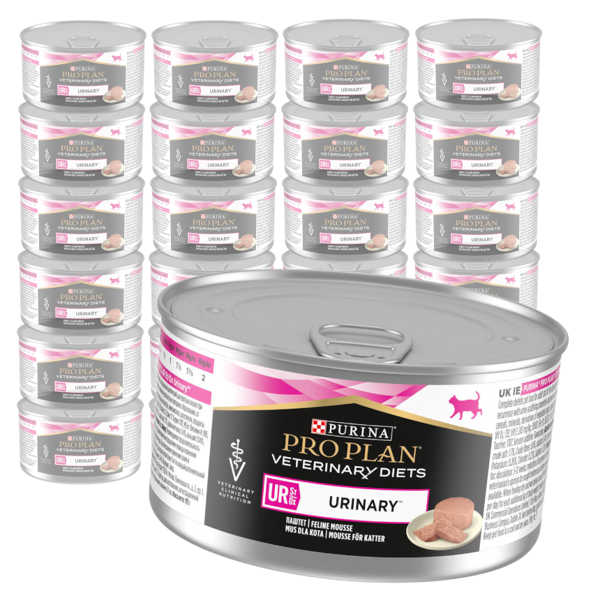 Należy zapewnić w sposób ciągły wodę do picia. Podając karmę suchą i mokrą PPVD UR St/Ox Urinary zapoznaj się z etykietą karmy suchej. Dla kotów ważących powyżej 6 kg, podawaj 1/3 puszki na każdy dodatkowy kg masy ciała.