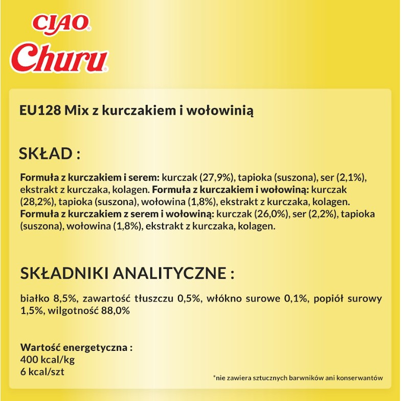 Churu są niskokaloryczne, nie zawierają zbóż i konserwantów, są produkowane z mięsa