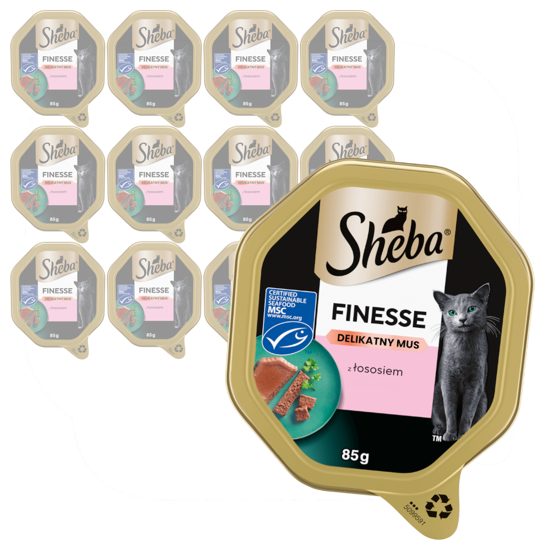 Pełnoporcjowa karma Sheba® Finesse to prawdziwa rozkosz w formie delikatnego musu dla Twojego kociego przyjaciela. Propozycja posiłku z łososiem zachwyci podniebienia nawet najbardziej wymagających kotów.