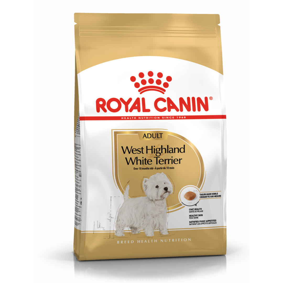 Karma ROYAL CANIN® West Highland White Terrier Adult, przeznaczona dla psów rasy west highland white terrier powyżej 10 miesiąca życia, została opracowana specjalnie pod kątem potrzeb Twojego dorosłego psa.