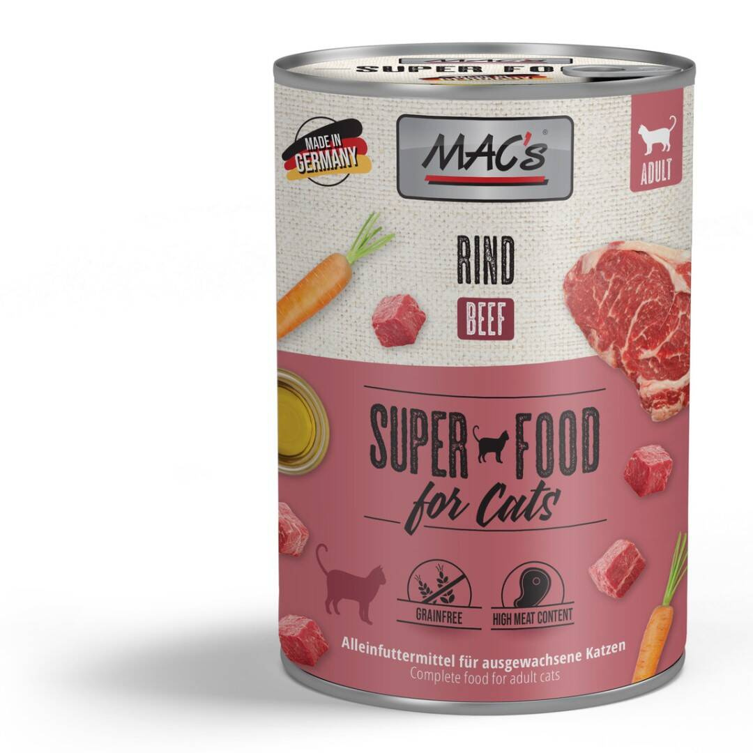 Specjalna receptura MAC's nie zawiera zbóż i została opracowana jako zbilansowana, pełnowartościowa karma dla dorosłych kotów. Dzięki delikatnemu przygotowaniu oraz dodatkowi witamin i minerałów Twój kot otrzyma naturalną dietę.