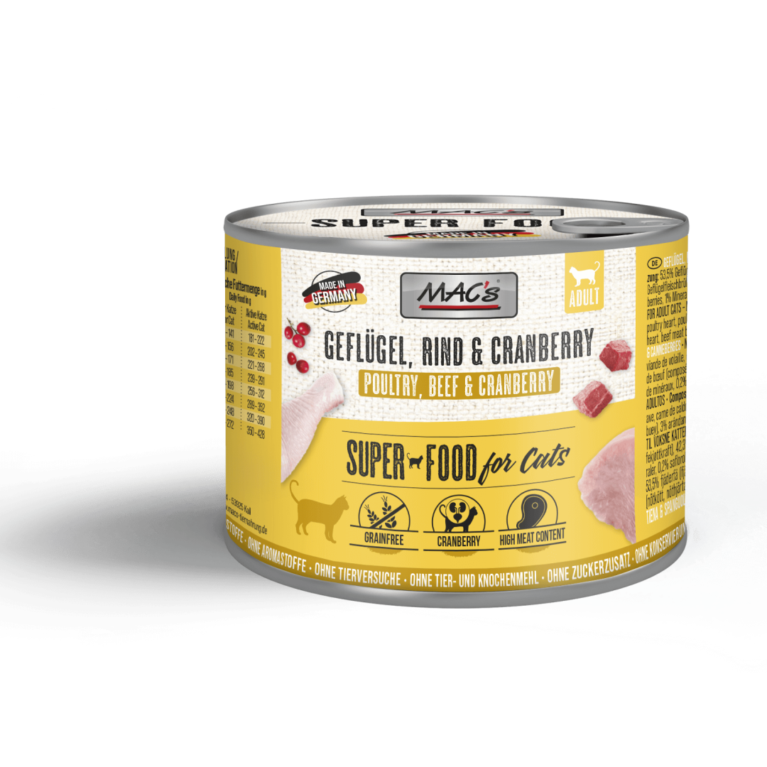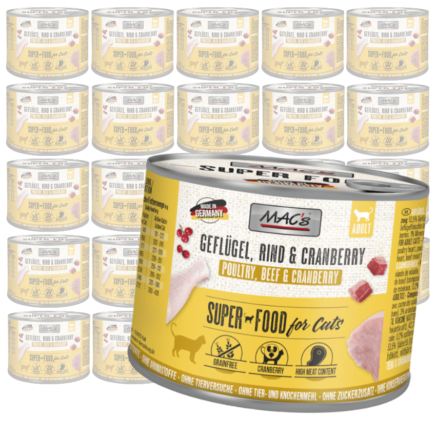Poultry, Beef & Cranberry firmy MAC nie zawiera zbóż, a specjalna receptura została opracowana jako zbilansowana, pełnoporcjowa karma.