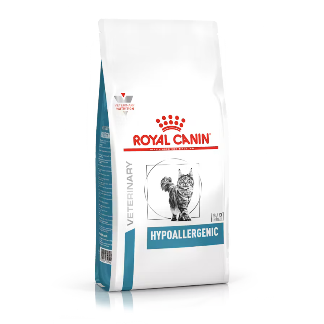 Karma ROYAL CANIN® Hypoallergenic została opracowana po to, aby zminimalizować ekspozycję na białka o właściwościach alergizujących. ROYAL CANIN® Hypoallergenic to pełnoporcjowa dietetyczna karma przeznaczona dla dorosłych kotów z nietolerancją lub alergią pokarmową.