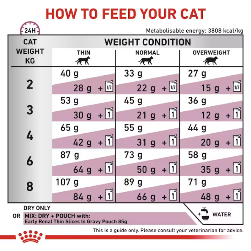 Pełnoporcjowa dietetyczna karma dla dorosłych kotów, wspomagająca funkcję nerek w przypadku ich przewlekłej niewydolności, dzięki ograniczonemu poziomowi fosforu oraz zastosowaniu białek o wysokiej jakości. Karma sucha EARLY RENAL zalecana jest we wczesnych stadiach przewlekłej niewydolności nerek.
