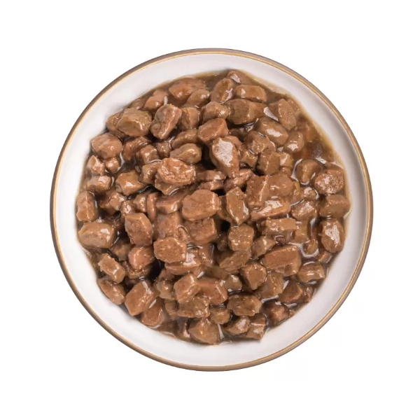 Zawiera powyżej 70% surowca mięsnego w kawałkach zanurzonych w delikatnym sosie. Bogata w składniki odżywcze oraz witaminy zapewni Twojemu psu zdrowy, pełnoporcjowy posiłek na cały dzień!