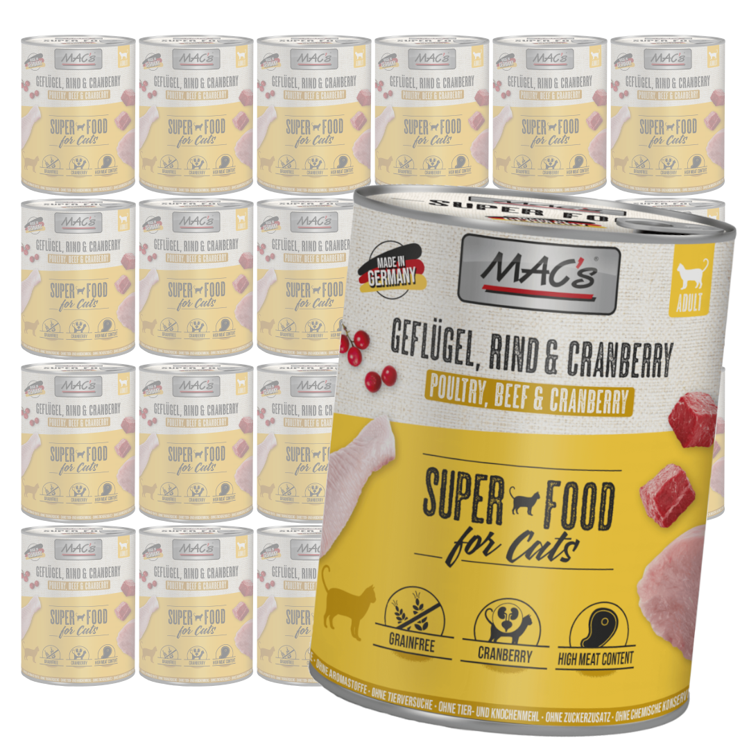Poultry, Beef & Cranberry firmy MAC nie zawiera zbóż, a specjalna receptura została opracowana jako zbilansowana, pełnoporcjowa karma.