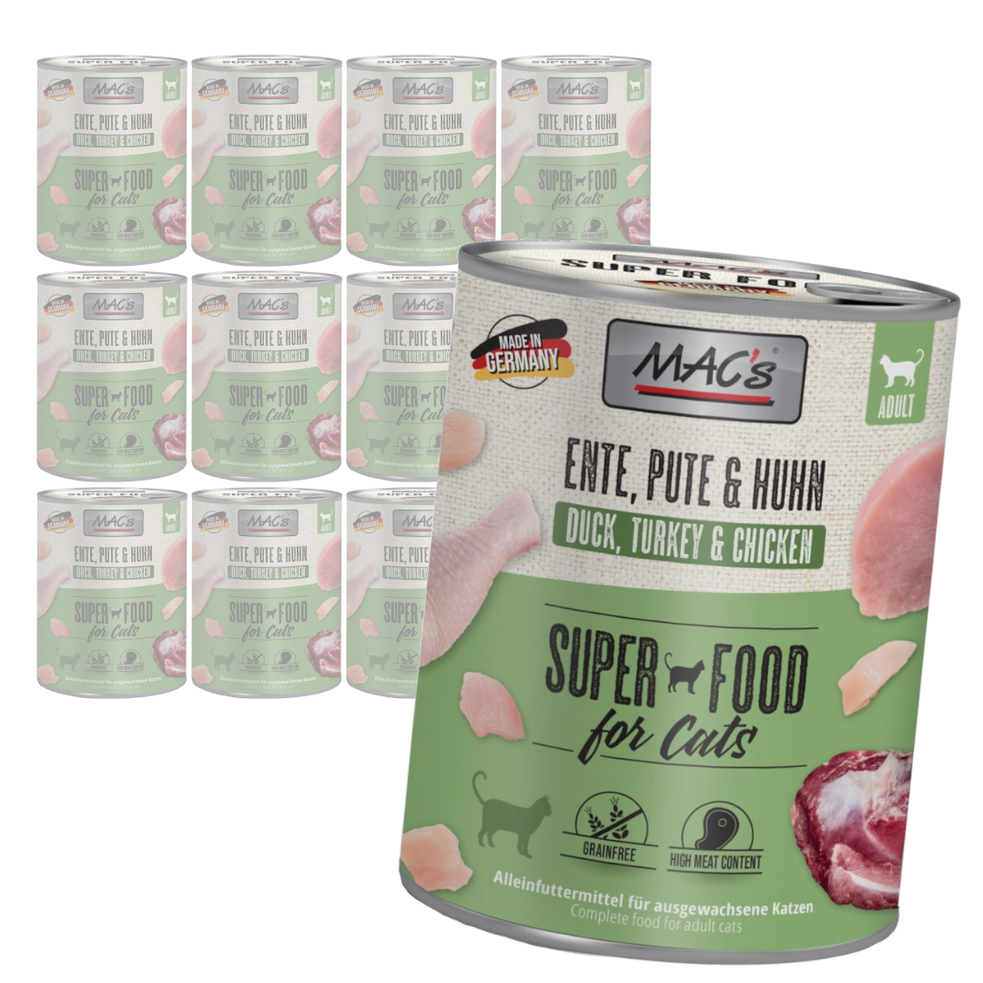 MAC's Kaczka, Indyk, Kurczak to doskonała kompozycja trzech rodzajów świeżego drobiu, oferująca Twojemu kotu to, co lubi najbardziej - mięso.