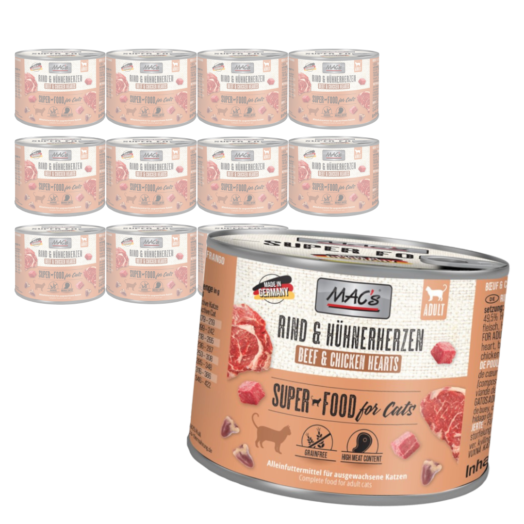 MAC's Beef & Chicken Hearts łączy mięso wołowe i drobiowe w ucztę i oferuje Twojemu kotu to, co lubi najbardziej.