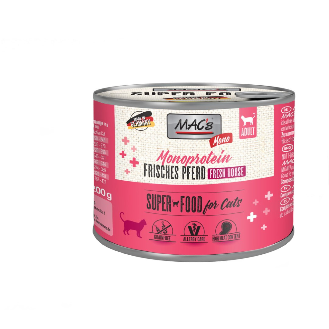 MAC's MONO Horse składa się z jednego rodzaju mięsa jako źródła białka. MAC's MONO jest idealny dla wrażliwych kotów i nadaje się do diety wykluczającej.