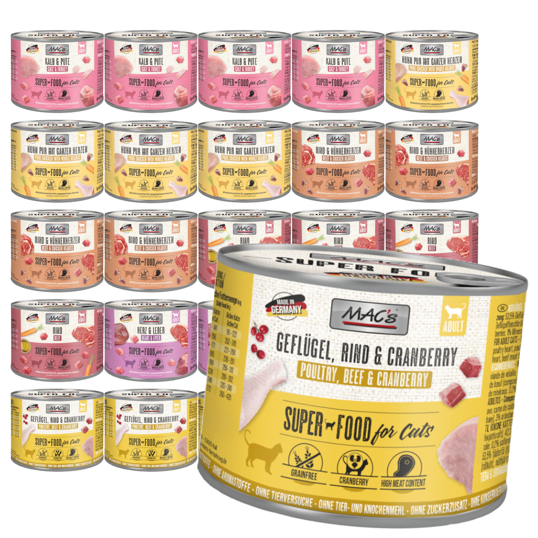 MAC's 24x200g Bezzbożowa Mokra Karma Dla Dorosłych Kotów Mix 6 Smaków
