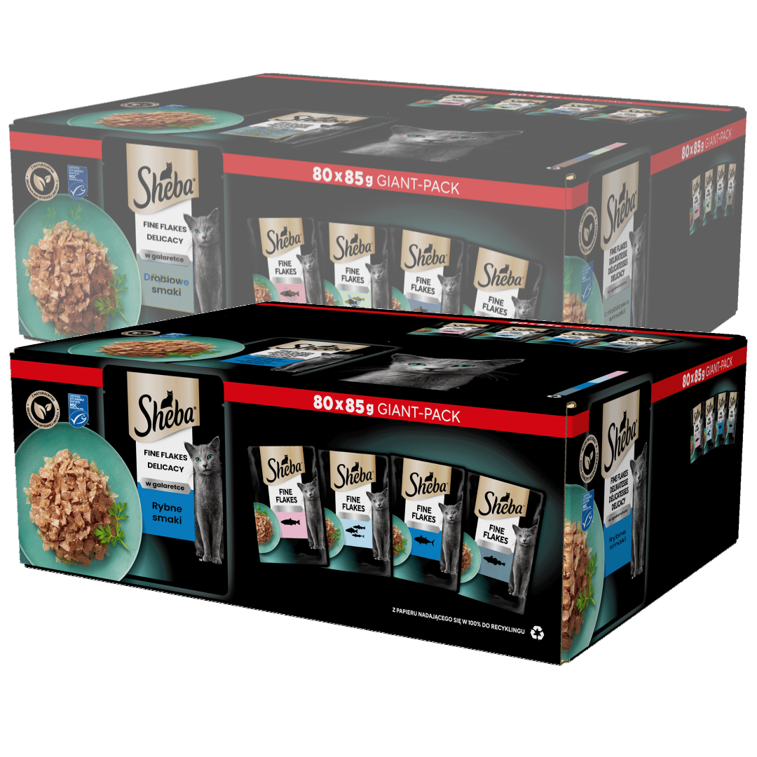 SHEBA Saszetki 80x85g Delicacy Rybne Smaki Mokra Karma Dla Dorosłych Kotów w Galaretce