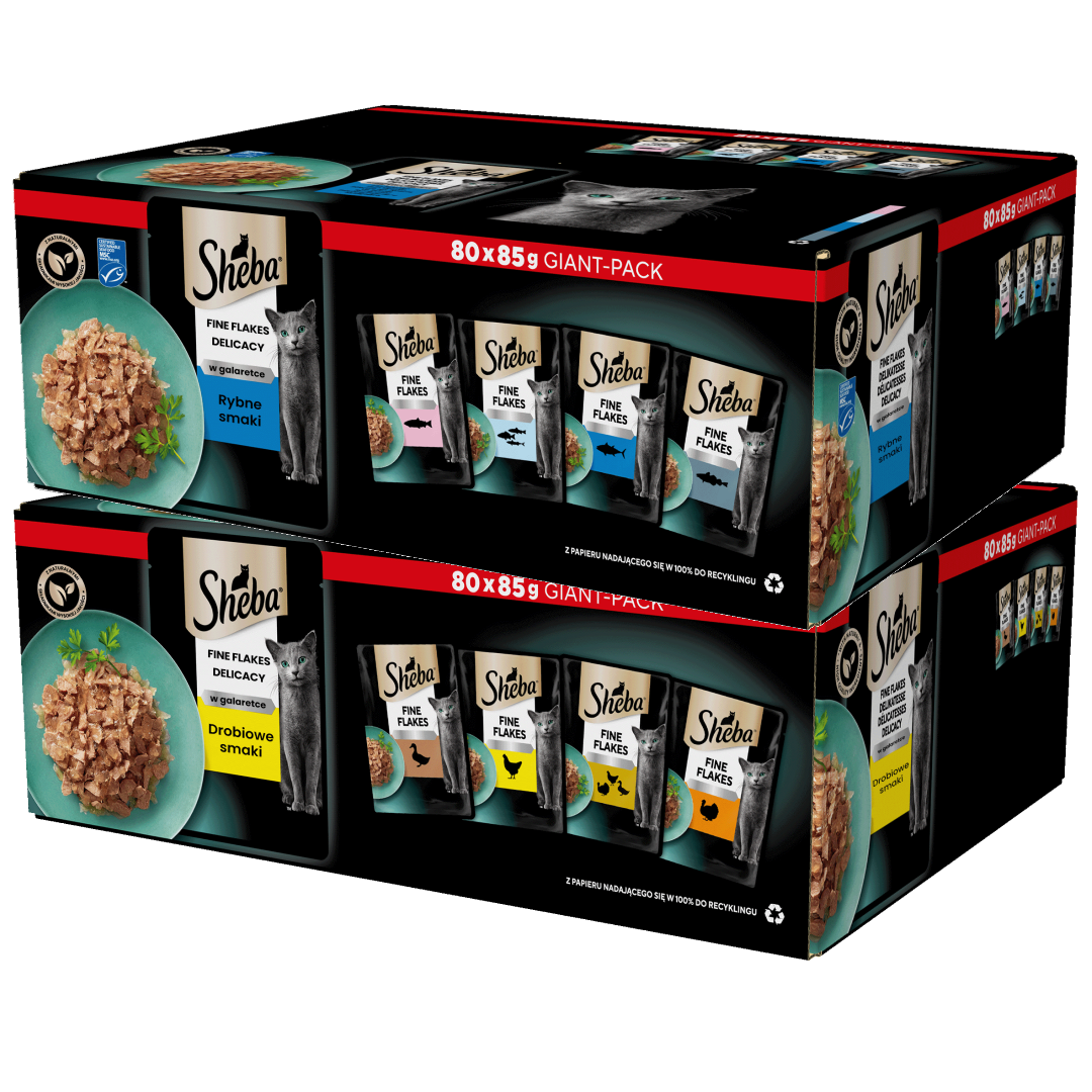 Sheba Fine Flakes Delicacy 160x85g Rybne i Drobiowe Smaki Mokra Karma Dla Dorosłych Kotów w Galaretce
