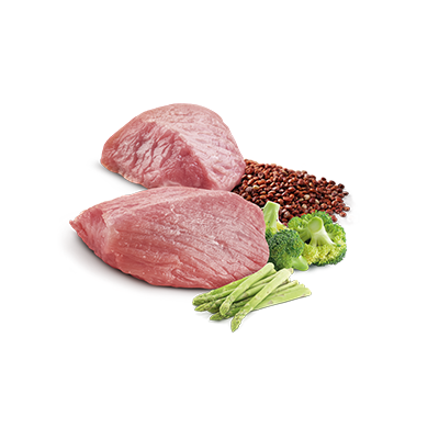 Skład: łopatka i żeberka jagnięce (50%), hydrolizowane białko rybne, nasiona komosy ryżowej ekstrahowane (5%), olej z ryb, brokuły, szparagi, fruktooligosacharydy, łuski i nasiona babki płesznik, siarczan chondroityny, glukozamina, witaminy, minerały.