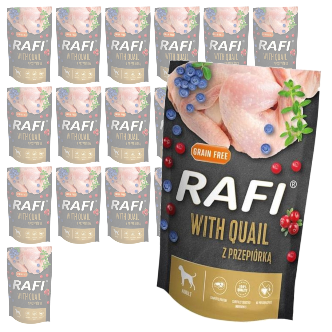 Rafi 20x500g Mokra Bezzbożowa Karma Dla Dorosłych Psów Z Przepiórką Żurawiną I Borówką