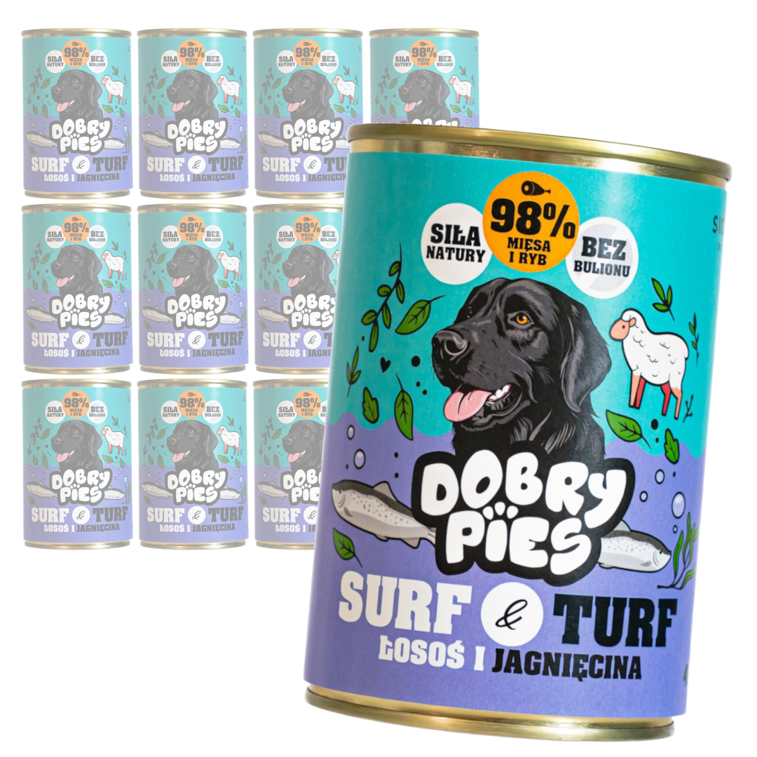 Dobry Pies Surf & Turf 12x400g Mokra Karma Dla Dorosłych Psów Z Łososiem I Jagnięciną