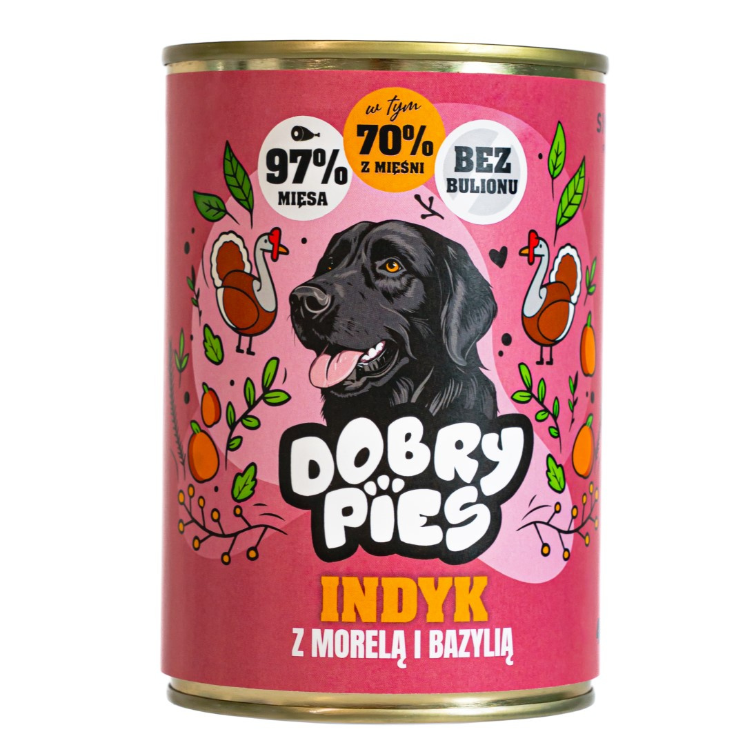 ✓ 1x400g Dobry Pies indyk z morelą i bazylią