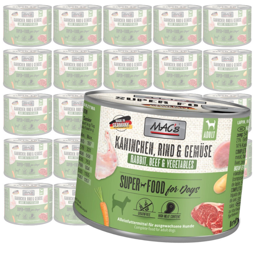 MAC's Dog 24x200g Bezzbożowa Mokra Karma Dla Psa z Królikiem Wołowiną i Warzywami