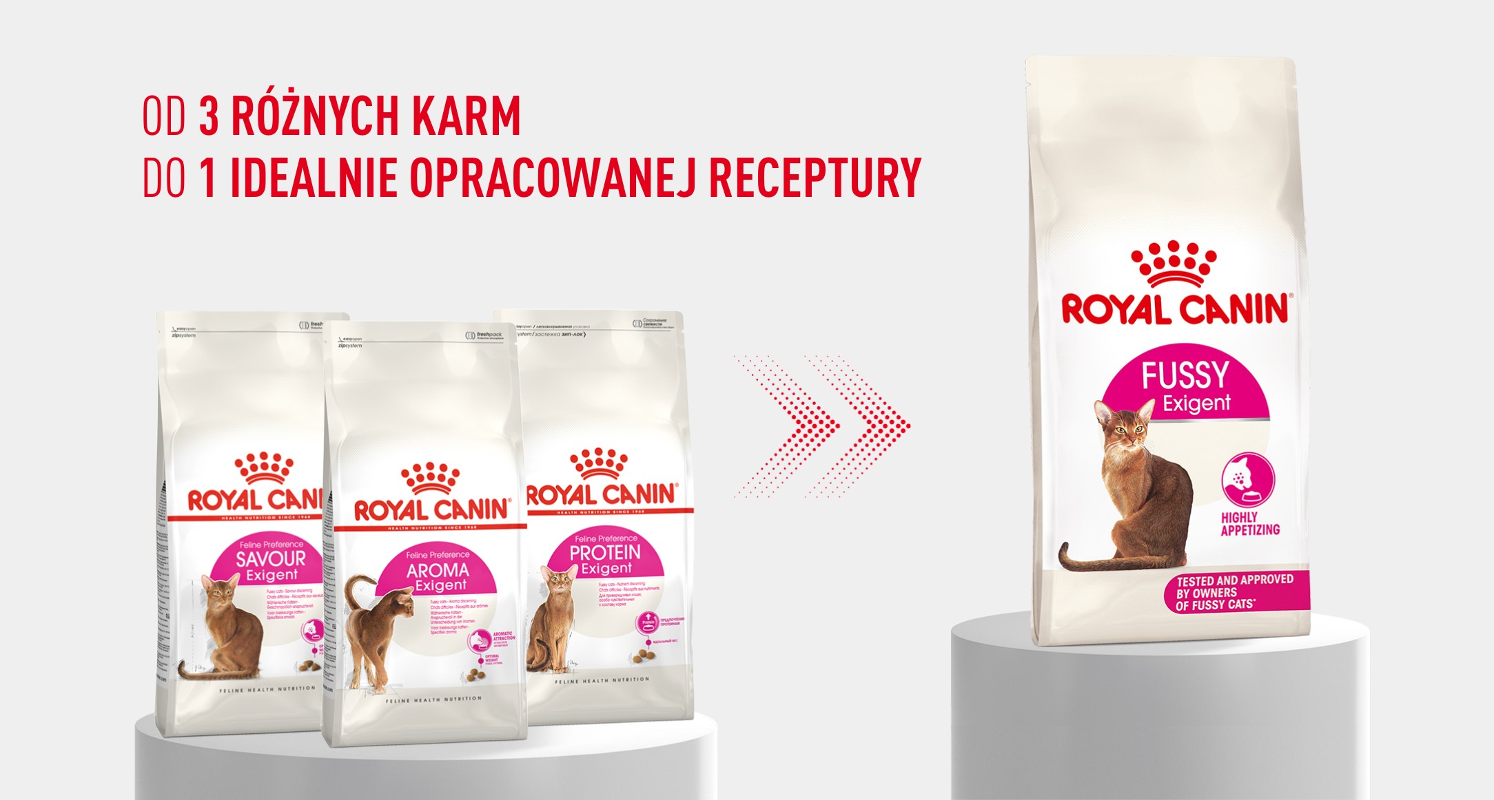 Nowa receptura karmy Fussy opracowana została specjalnie dla kotów szczególnie wybrednych i łączy w sobie cechy trzech wcześniejszych karm z linii Exigent – Savour, Aroma i Protein.
