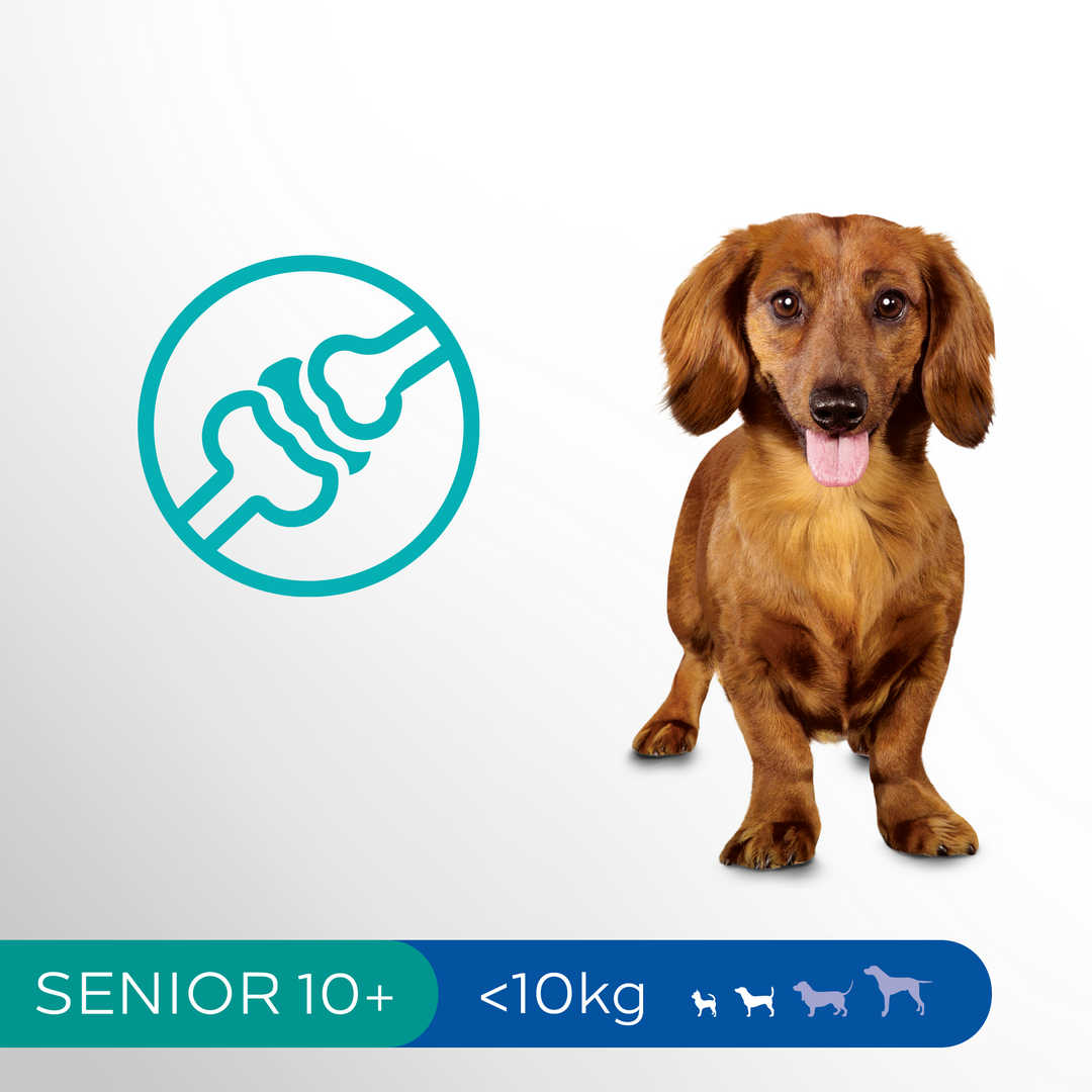 Receptura Perfect Fit™ Senior 10+ została opracowana we współpracy z lekarzami weterynarii oraz specjalistami ds. żywienia z Instytutu Nauki o Zwierzętach WALTHAM™, aby dostarczyć niezbędne składniki odżywcze starszym psom. Tak jak inne warianty, również pokarm Perfect Fit™ Senior 10+ bogaty w kurczaka dostarcza dodatkowe korzyści: wspiera sprawność ruchową oraz zawiera prebiotyki, aby dbać o mikrobiom jelitowy.