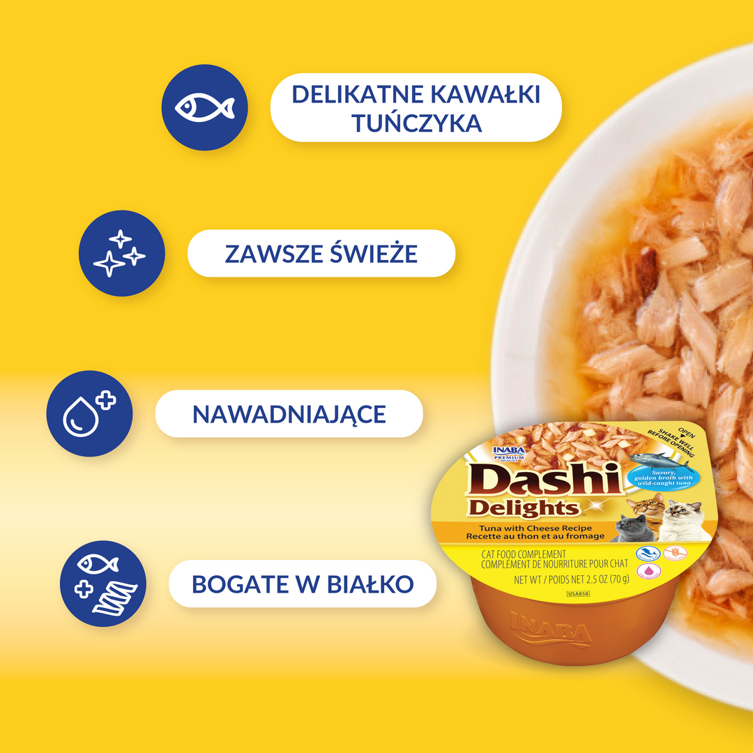 Inaba Cat Dashi Delights 12x70g Uzupełniająca Karma Dla Kota Bulion z Tuńczykiem i Serem
