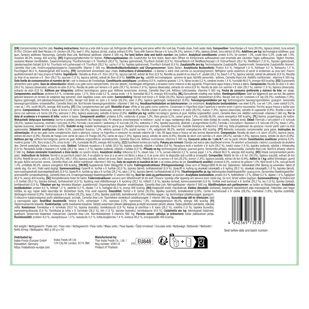 Wskazówki dotyczące karmienia: podawać kotu jako karmę uzupełniającą. Po otwarciu, przechowywać w lodówce i zużyć w ciągu następnego dnia. Kotu należy zapewnić stały dostęp do świeżej wody.