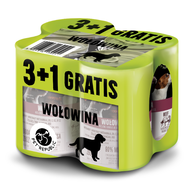 PetRepublic Wołowina z Warzywami w Sosie 3+1 GRATIS 4x400g Mokra Karma Dla Psa